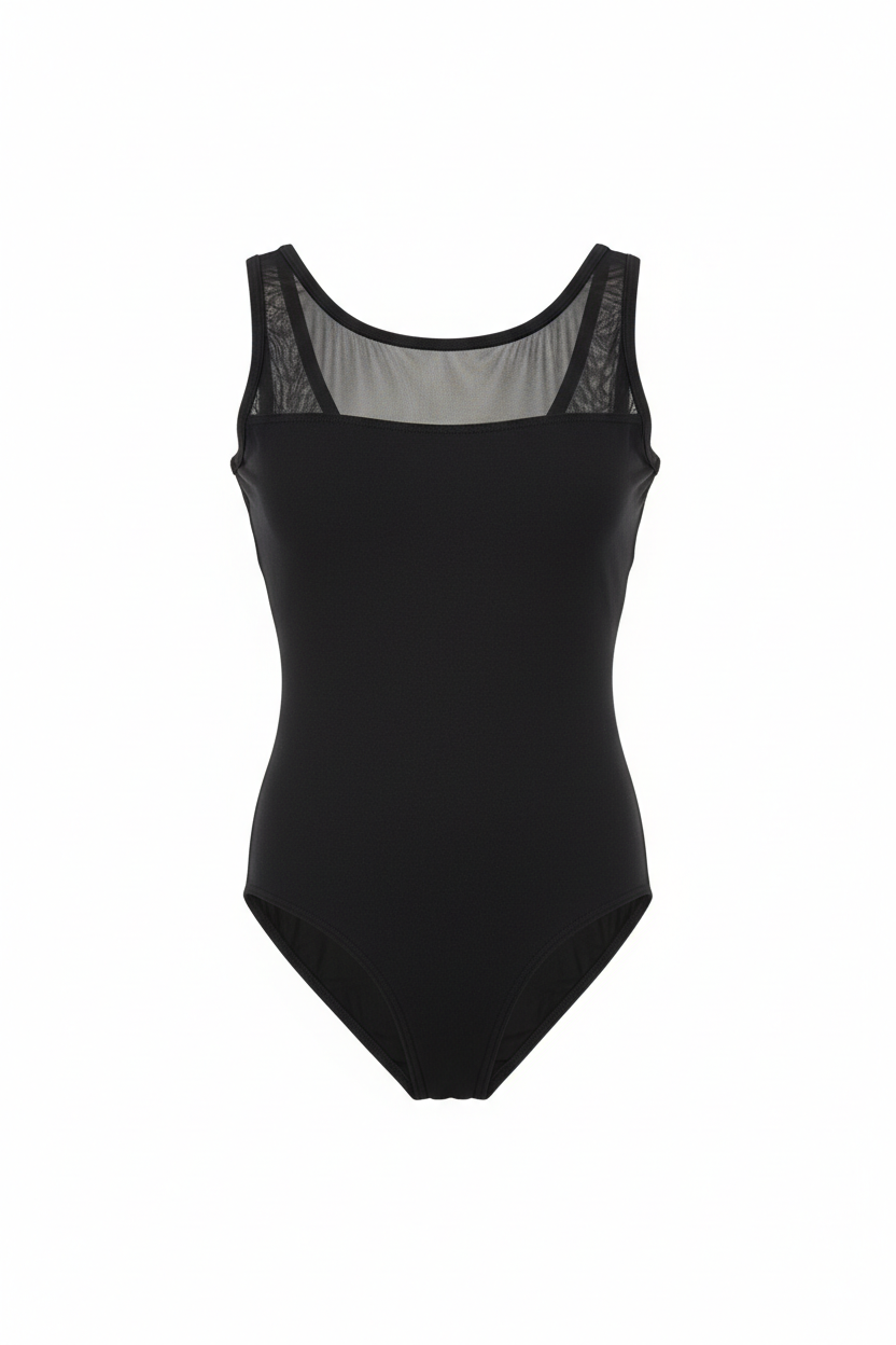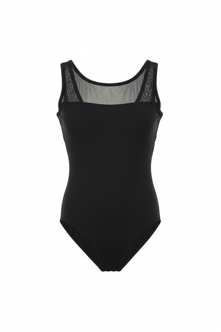 - Leotard with wide straps- Crossed back- Combination of mesh and microfiber