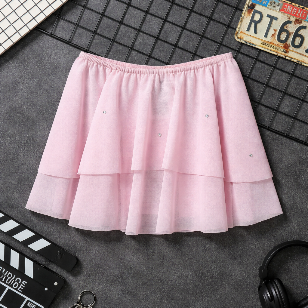 Beautiful two-layer skirt made of mesh, with crystals