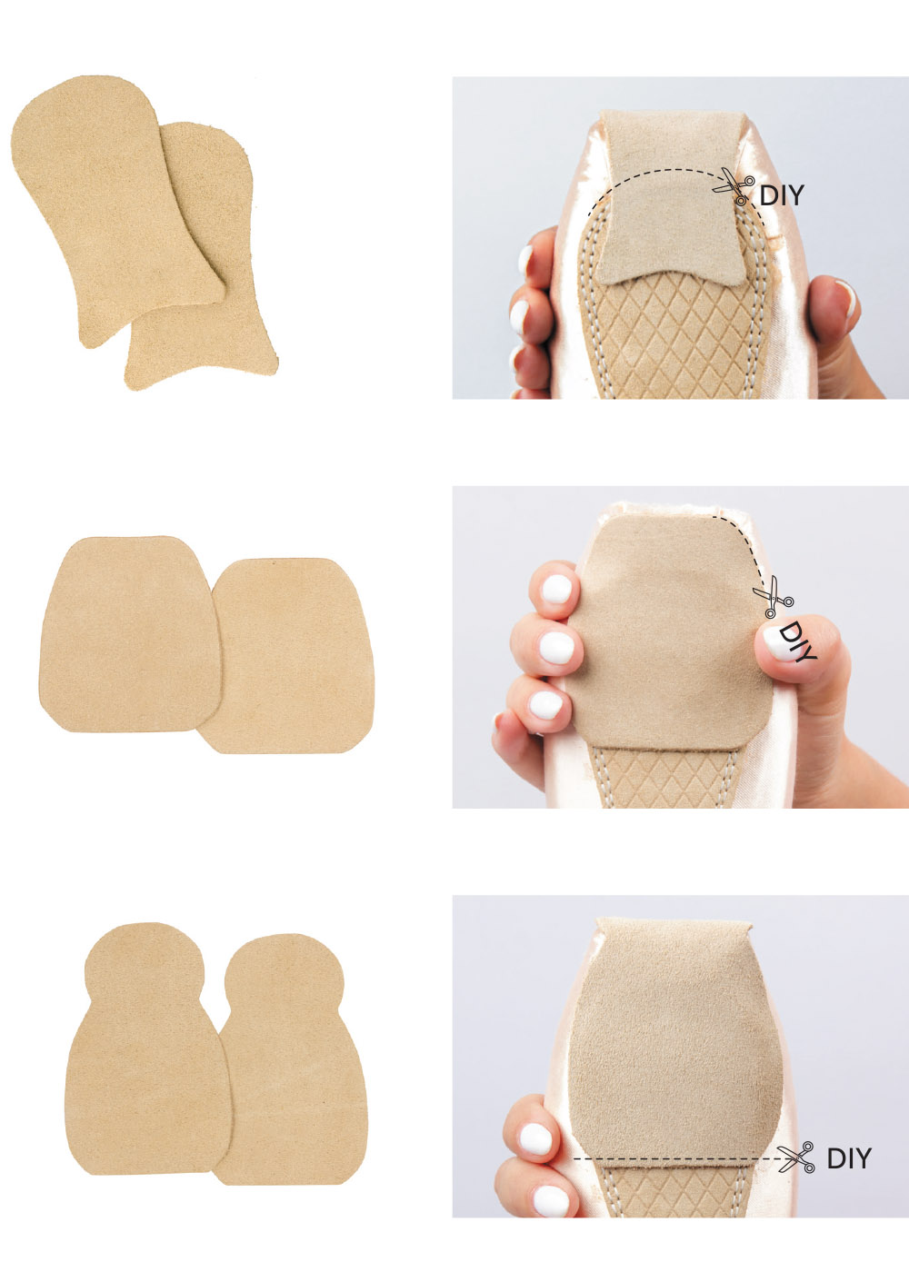 Caps are glued to the platform of pointe shoes to increase their durability. They can be trimmed to fit all pointe shoe styles.Material: Split Leather